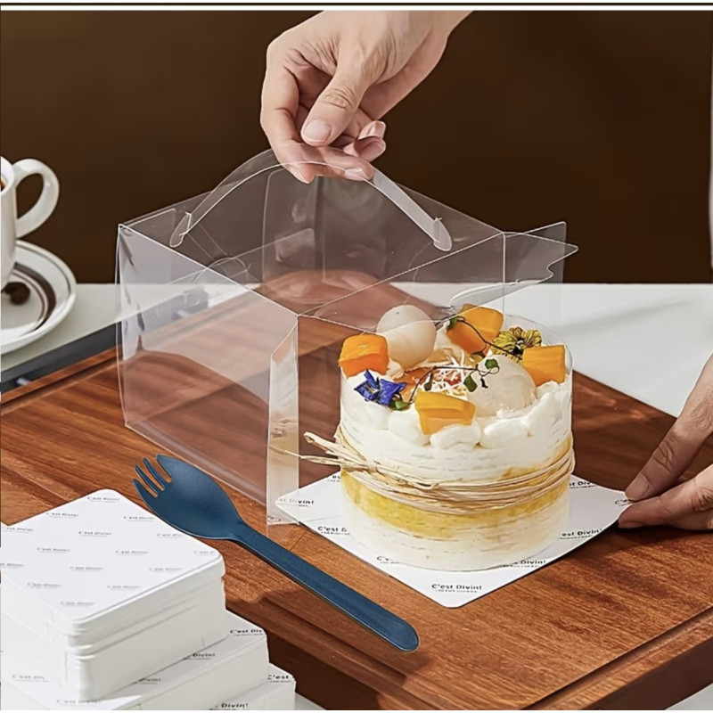 Clear Cake box with a white base Box size: (L) 19.5x (W) 19.5 x (H) 15cm Fits 5/6/7 inch ..